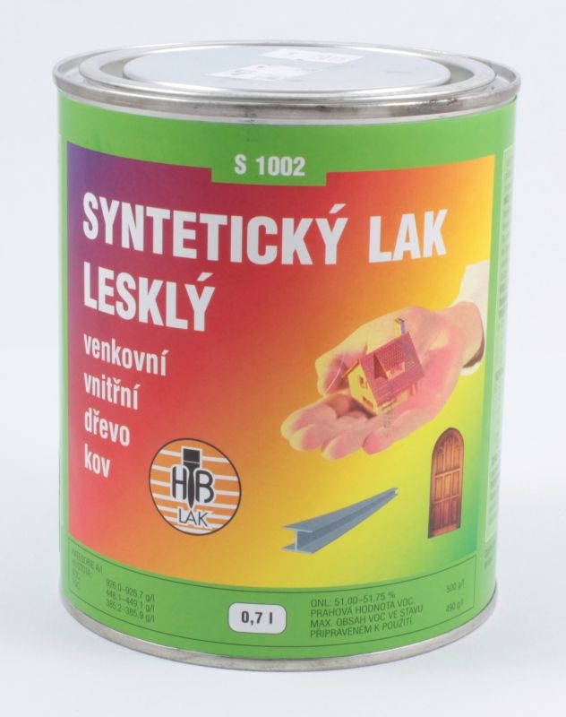Transparentní univerzální syntetický lak lak dobře chrání před povětrnostními vlivy, směs alkydové pryskyřice. K transparentním nátěrům dřeva, kovu a minerálních podkladů pro vnitřní a venkovní použití. Syntetický bezbarvý lesklý lak je roztok alkydové pryskyřice, modifikované sojovým olejem v lakovém benzinu, sikativovaný.