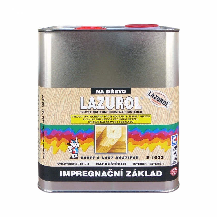Lazurol impregnační základ S1033 čirý 2,5lSkladem. Odesíláme v pracovní dny, zpravidla do 3-5 dnů. 3 ks658 Kč/ ks544 Kč bez DPH