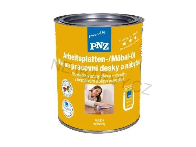 PNZ Olej na pracovní desky a nábytek (PNZ - ARBEITSPLATTEN-ÖL) Charakteristika: PNZ Olej na pracovní desky a nábytek se vyrábí v bezbarvém a bílém provedení. Je prodyšný, reguluje vlhkost a proniká hluboko do ošetřované plochy. Poskytuje povrchu dřeva dokonalou ochranu, odpuzuje vodu a nečistoty.